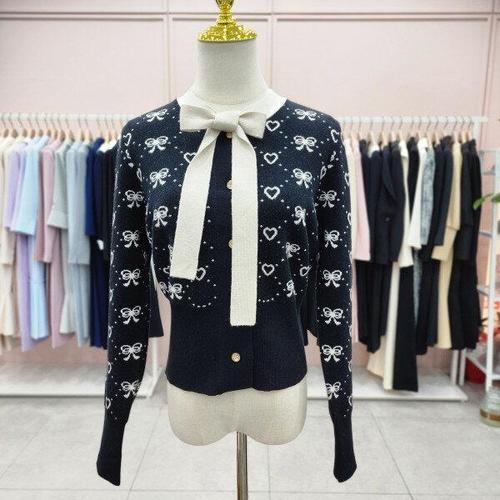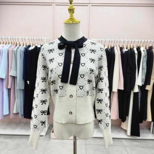 [샤틴]리본배색 패턴 니트 블라우스가디건S244K905A_JK