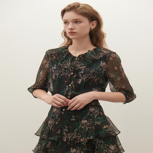 [샤틴]플라워프린팅 프릴 쉬폰블라우스(탑)S231S204A51_JK