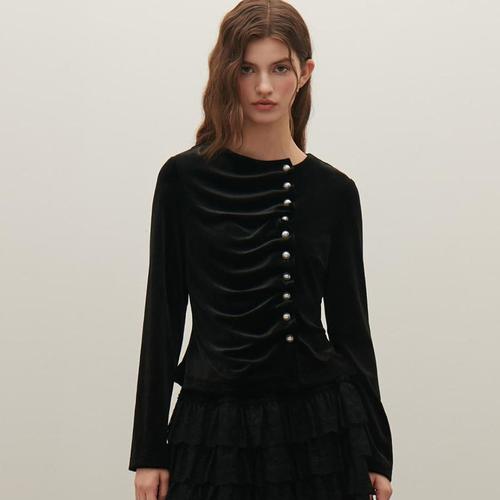 [샤틴]진주단추 벨벳 블라우스S254M255A