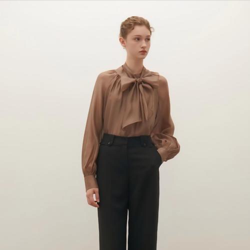 [샤틴]시스루 리본 블라우스 (S232P202)_DG