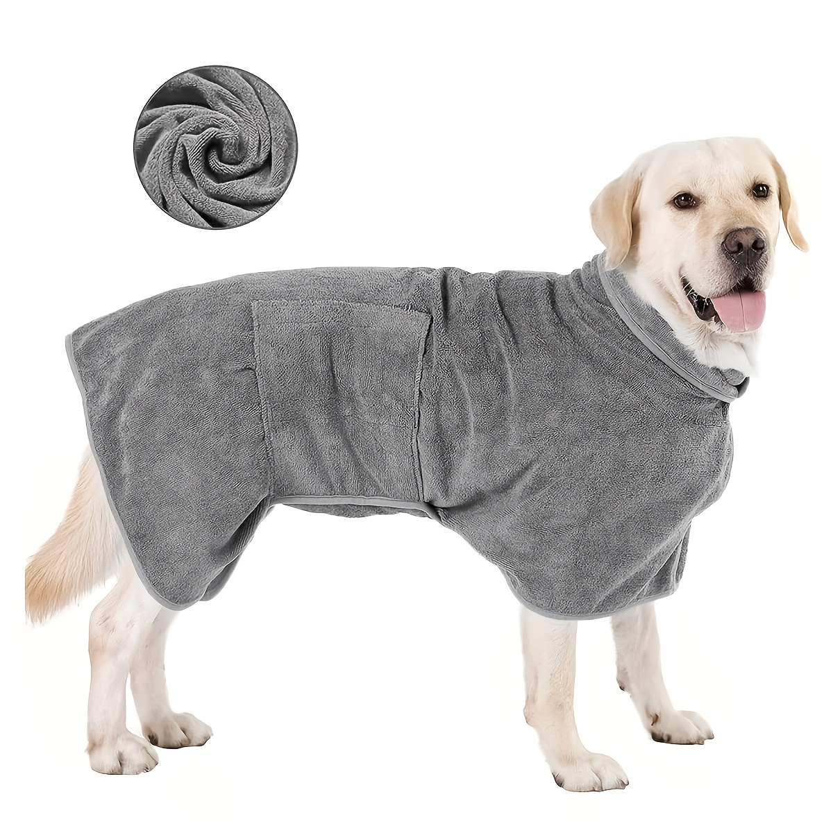 TEMU 빠른 건조 강아지 목욕 가운 - 소형, 중형, 대형 강아지용 타월 랩 포함, 조절 가능 & 스냅 버튼, 사계절용 목욕 후 가운, 세탁기 사용 가능 펫 의류