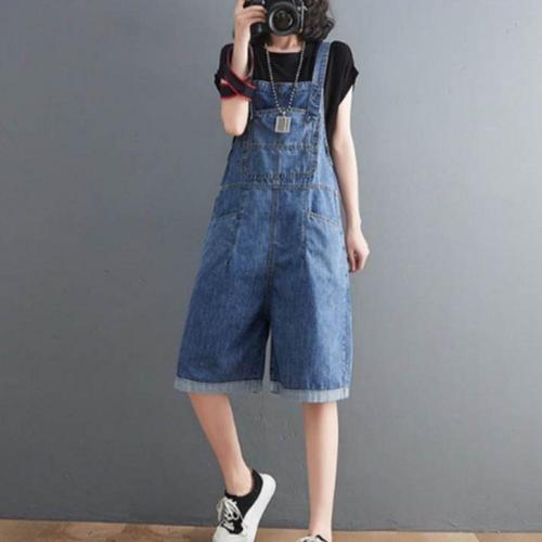 여성 데님 절개 와이드 반바지 캐주얼 여름 청 멜빵 WFNR1KO