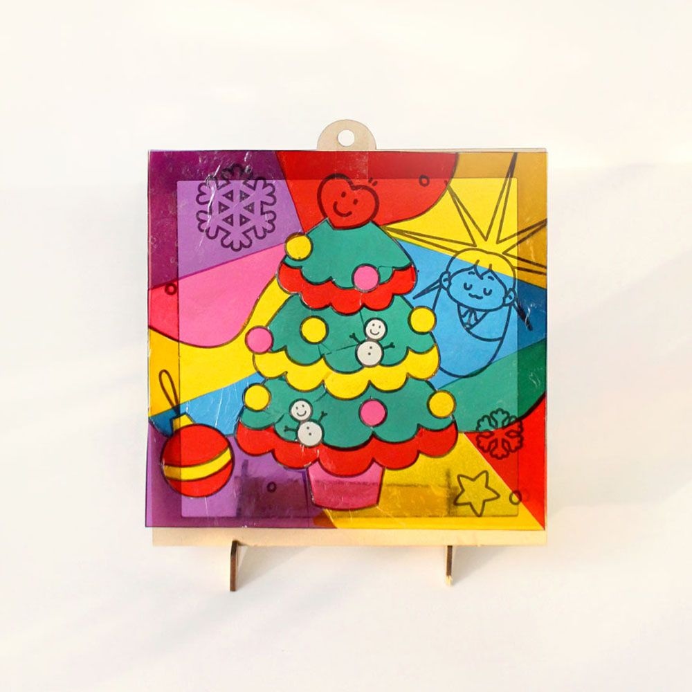 크리스마스 트리 명화 액자 썬캐쳐만들기 ( 우드공예 겨울 미술 재료 키트 방구미기 소품 )