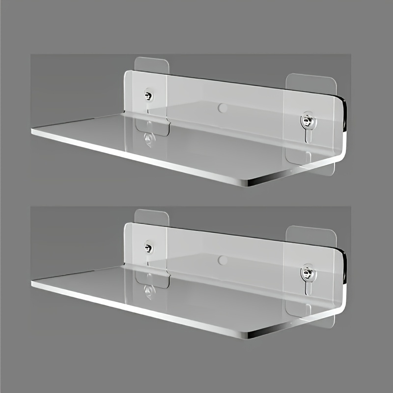TEMU 2개 아크릴 플로팅 선반, 거실·욕실·침실·주방·사무실용 무형 벽걸이 선반 (5.91x11.81인치, 약 30 x 15cm) 투명 수납대, 접착 패드 및 나사 포함, 드릴링 또는 무드릴 설치 선택 가능, 샤워품 전시 홀더