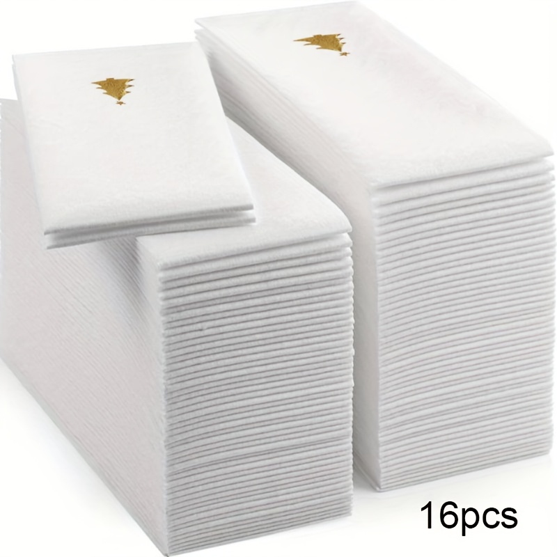 TEMU 16개 크리스마스 트리 금박 린넨 흰색 냅킨, 두꺼운 일회용 축제용 두꺼운 핸드 타월, 21.5*10Cm, 8.46*3.94인치 길이의 종이 타월, 파티 및 이벤트, 결혼식, 크리스마스 및 축하 행사 축제 디자인에 적합