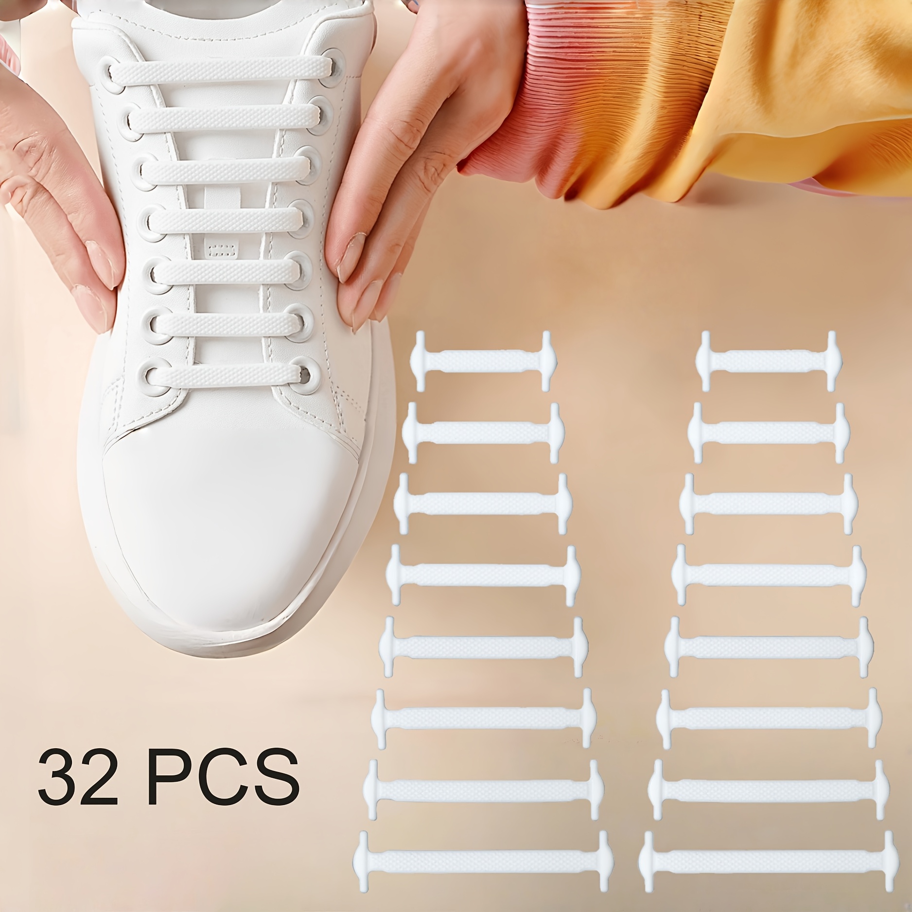 TEMU 32개 T자형 묶을 필요 없는 디자인, 가볍고 세척이 용이하며 사용하기 편리함, 스니커즈, 캐주얼 슈즈 및 스케이트 슈즈에 적합, 블랙/화이트 색상으로 제공, 배터리 없음