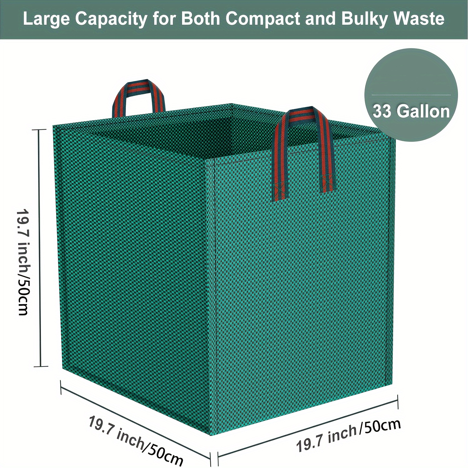 TEMU 33갤런 헤비듀티 그린 리프 가방 - 튼튼한 손잡이, 텍스처, 접이식 및 재사용 가능한 잔디 및 정원 청소용 가드닝 백