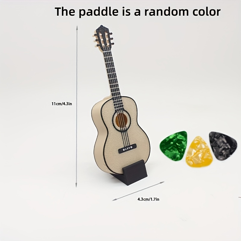 TEMU 픽 홀더가 있는 미니어처 기타 모델, 창의적인 데스크탑 장식 - 무료 픽 3개 포함