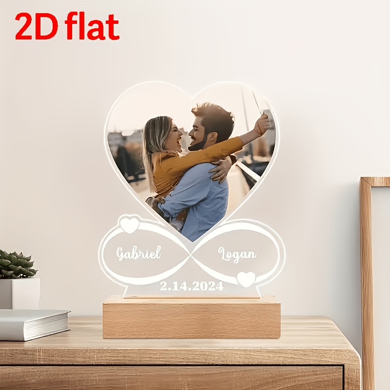 TEMU [2D 플랫] [2D 플랫] 클래식 스타일의 이름과 날짜가 특징인 맞춤 아크릴 사진 로고 (직선형 슬롯 스탠드 포함), 데스크탑 디스플레이에 적합한 다용도 홈 및 주방 장식