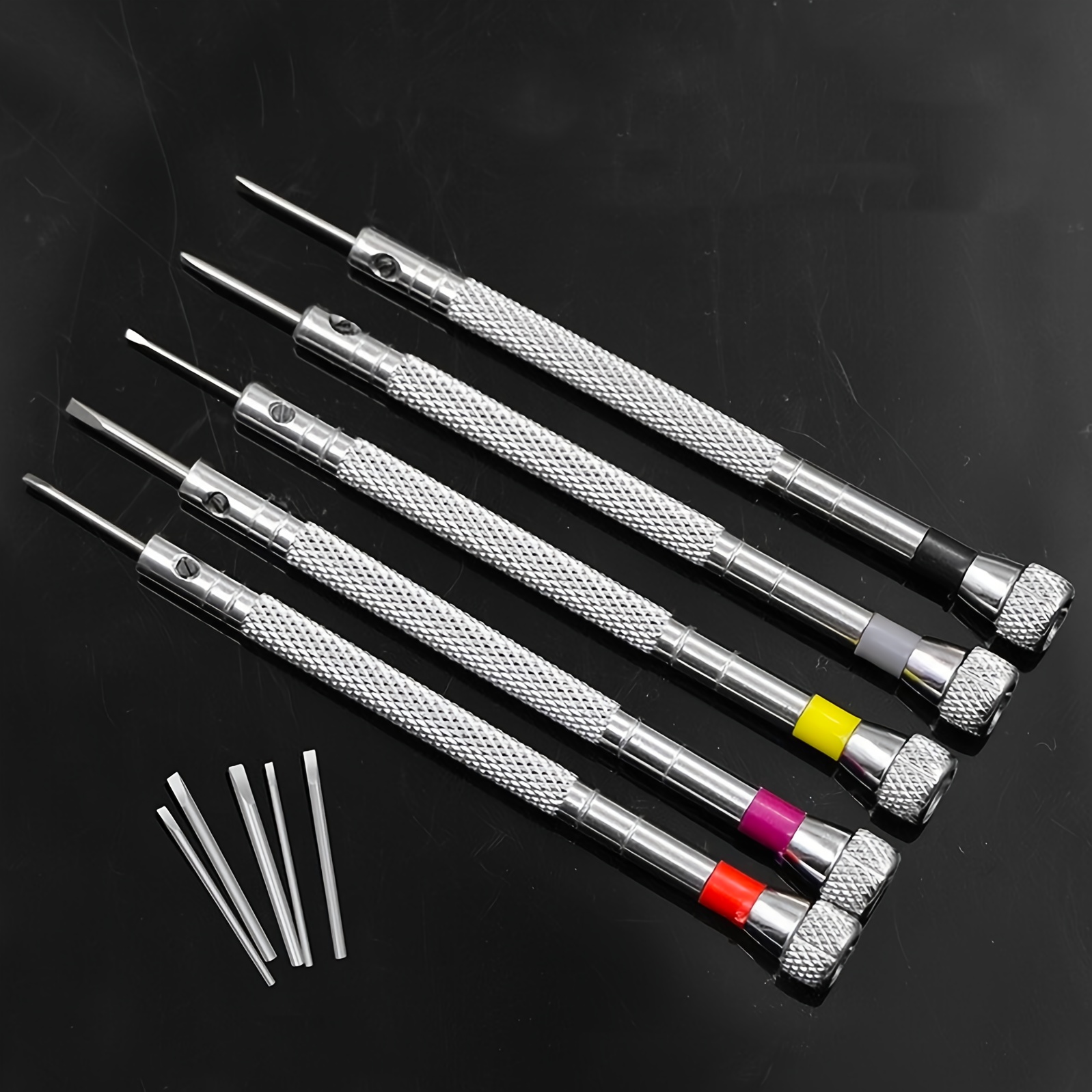 TEMU 정밀 시계 수리용 드라이버 세트 10개, 직선형 드라이버 핸들 5개와 교체용 비트 5개 포함, 사이즈 0.8/1.0/1.2/1.4/1.6mm, 시계, 안경, 휴대폰 수리 공구용