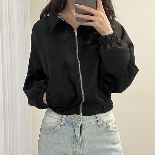 [다잇템][다잇템] 여자 세무 세미크롭 카라넥 고무줄 라글란 점퍼_23605931_588872