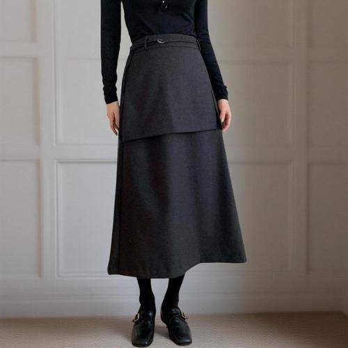 [미라클세븐]여성용 겨울 모직 벨트 A라인 롱 스커트