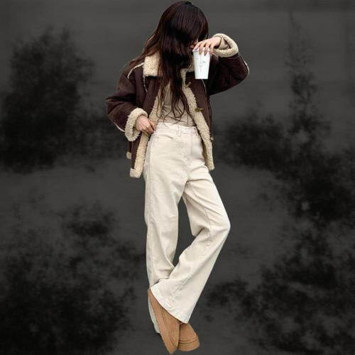 [미라클세븐]여성 겨울 양모 무스탕 루즈핏 스웨이드 자켓 점퍼