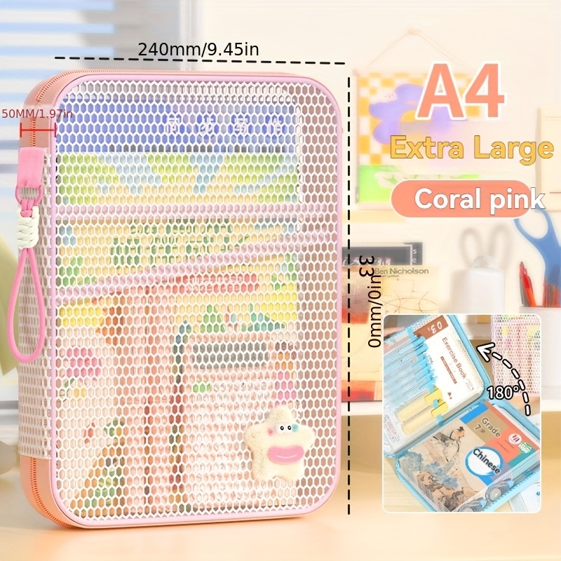 TEMU 1개 혼합 색상 A4 파일 가방, 휴대용 손잡이 수납 파우치, 다용도 정리함 (교과서 및 문구용품), 튼튼한 메시 소재, 사무용품 및 학교 필수품에 적합, 신학기