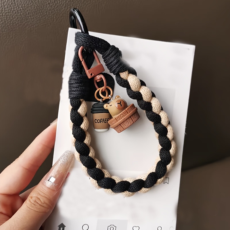 TEMU 1개 귀여운 카프리 비즈 폰 숏 랜야드, 범용 플라스틱 손 손목 스트랩, 광택 마감, 재사용 가능한 키체인, 불규칙한 모양, 범용 클립 포함, 일상복 착용에 이상적, 가방 또는 키 홀더, 범용 클립 포함 선물