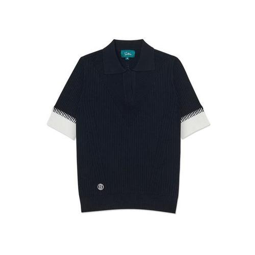 [세인트나인]여성 반팔 폴로 골지 스웨터 BLACK