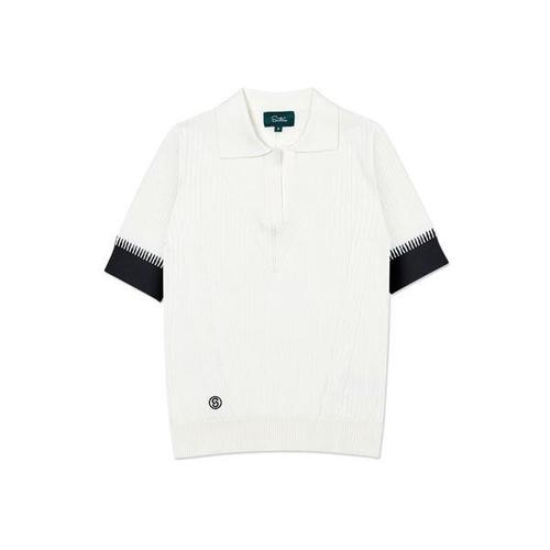 [세인트나인]여성 반팔 폴로 골지 스웨터 OFF WHITE