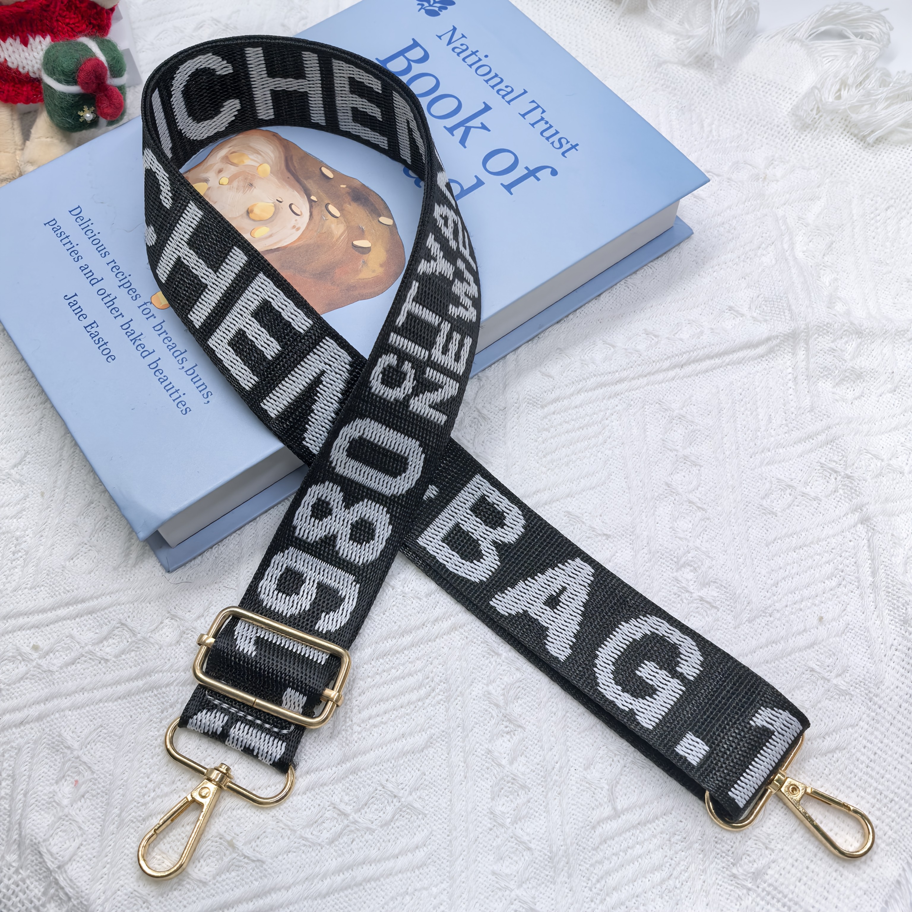 TEMU 여성용 가방 교체 가능한 어깨끈 1개 - 두꺼운 폴리에스터, 블랙 & 화이트 레터 디자인 "NOT OF ORDINARY", 골드 톤 클립, 크로스백 액세서리