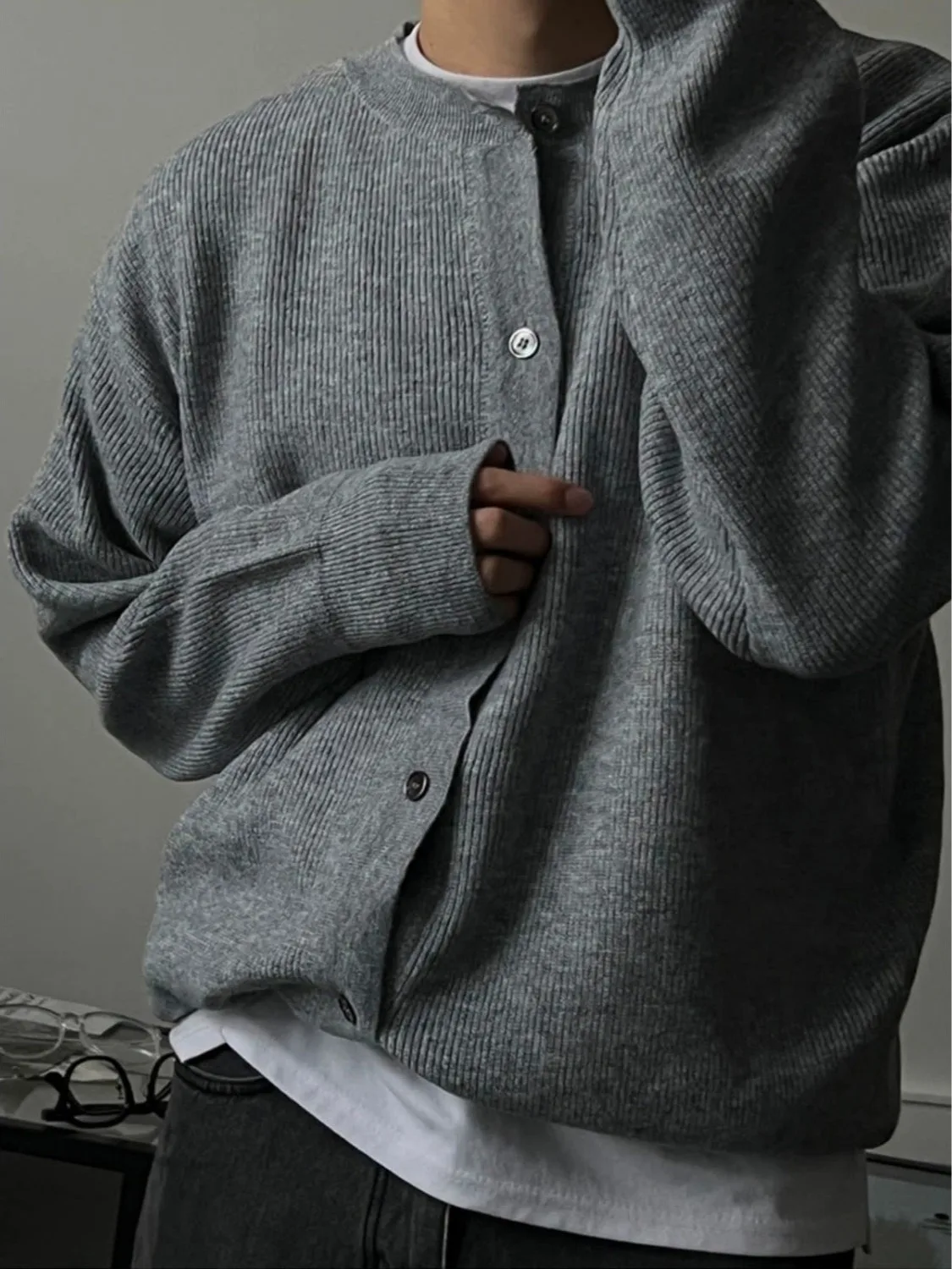 루즈핏 니트 울 가디건 긴 소매 라운드 넥 버튼업 스웨터 재킷 아메리칸 스타일 청소년 캐주얼 통기성 코트