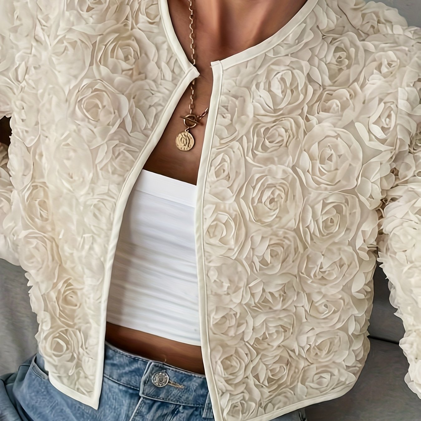 TEMU DP042319 신상 3D 플로럴 아일렛 라운드넥 우아한 캐주얼 재킷