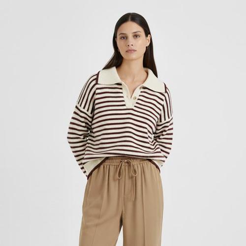 [에이치플러스몰]세일러카라 줄무늬 골프니트