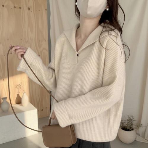 [옷자락] 여성 루즈핏 세일러칼라 골지 니트 스웨터