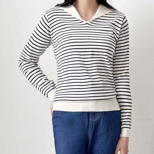 [셀럽하우스]배색 KFFO9230 스트라이프 세일러 카라 캐주얼 골지 니트