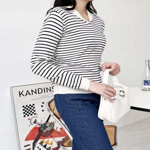 [셀럽하우스]세일러 WION2856 스타일 단가라 패턴 니트 긴팔 티셔츠