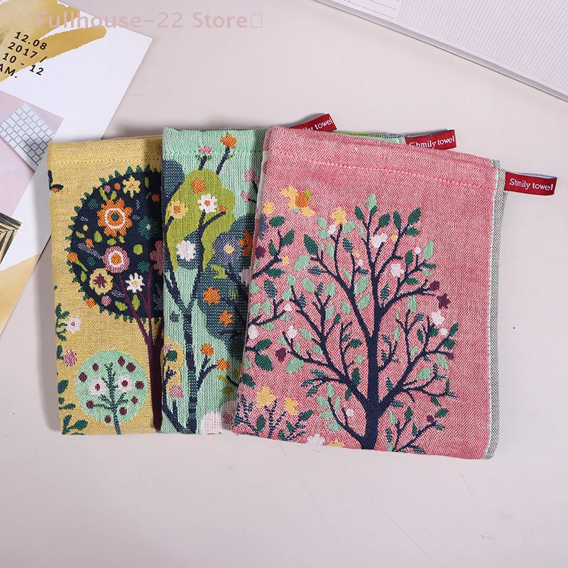 【MAX-22】1개 4겹 면사 사각 수건 숲을 테마로 한 다목적 기하학 무늬 수건 유용함