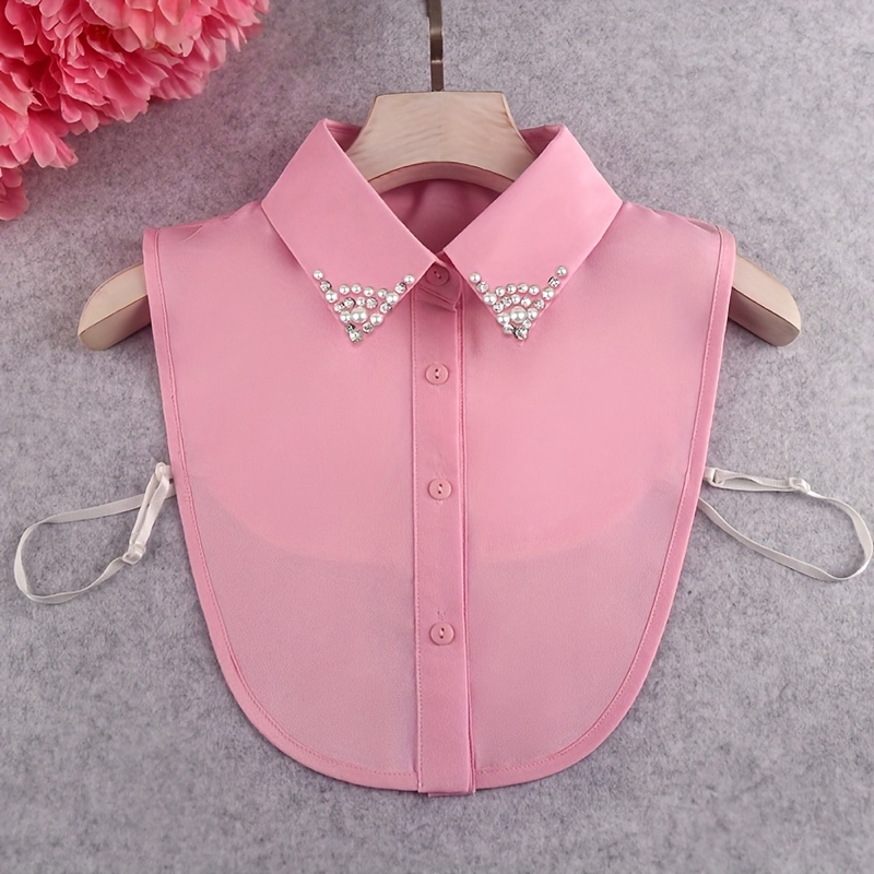 TEMU 여성용 시폰 삼각형 셔츠 1개, 우아한 탈부착식 칼라 포함