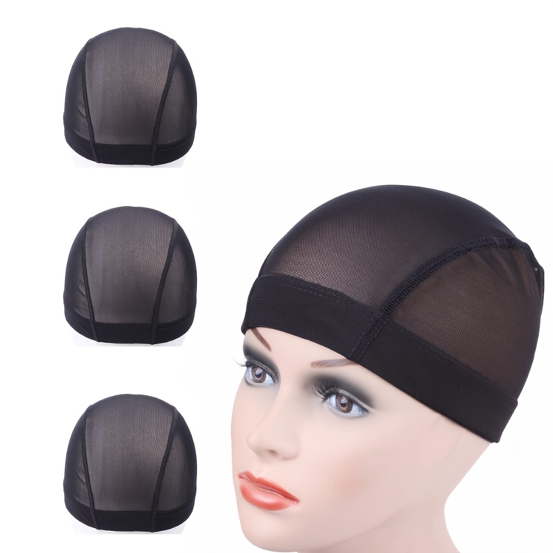 TEMU 3개 세트 메쉬 가발 캡, 와이드 밴드 탄력성 가발 캡, 블랙 메쉬 캡, 사이즈 M