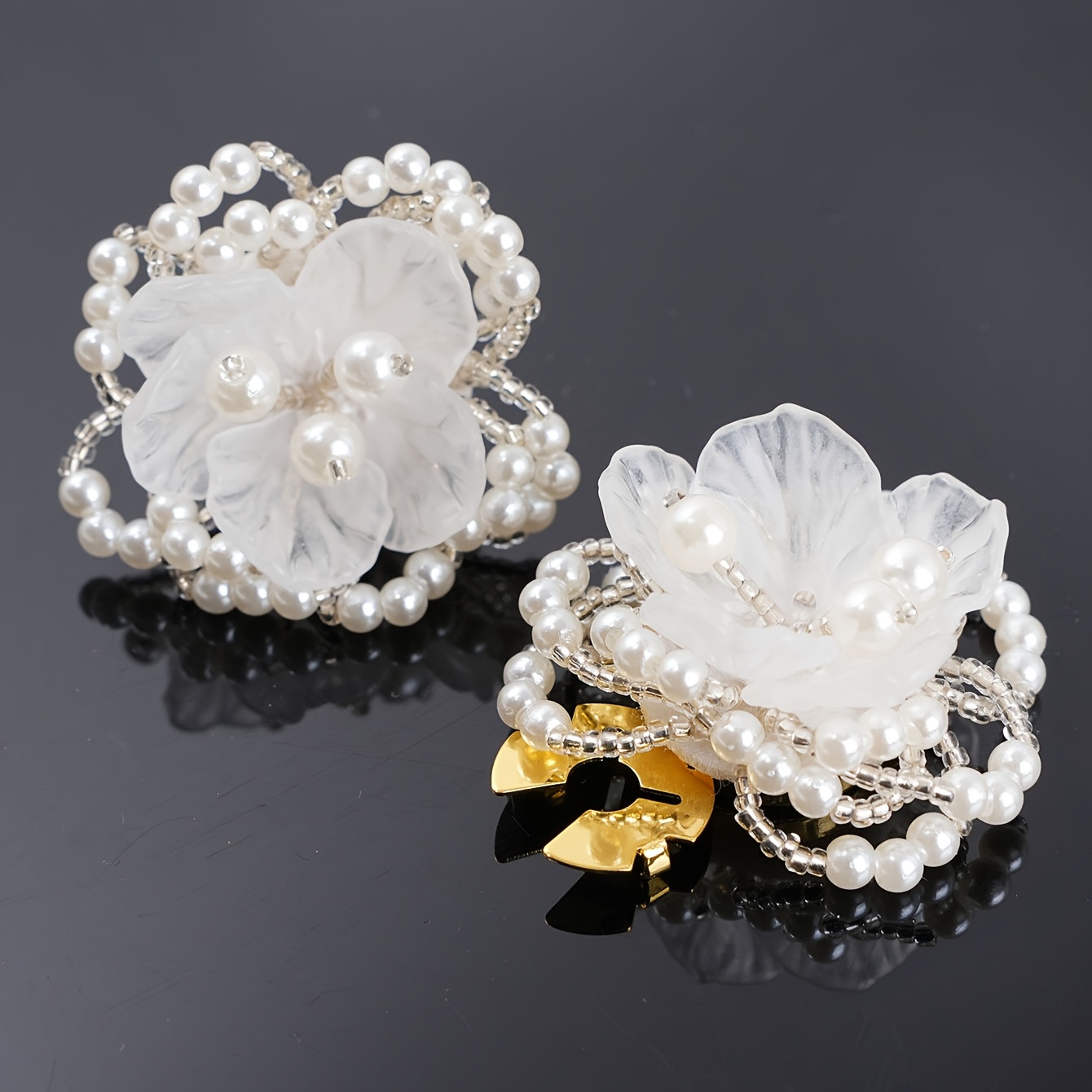 TEMU 핸드메이드 구슬 장식 꽃 단추 커버 클립 2개 세트, 우아한 반투명 꽃무늬 셔츠 단추 클립, 의류 장식, 정장 비즈니스 웨딩 파티용 고급스러운 화이트 꽃무늬 단추 커버, 여성을 위한 셔츠 액세서리