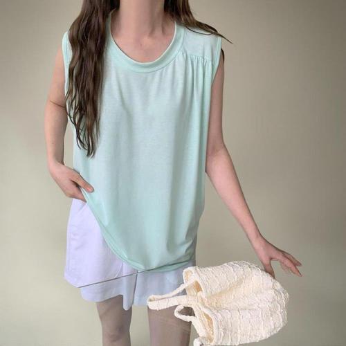 [신상오픈런]여성 레이온 스판 민소매 라운드넥 셔링 티셔츠