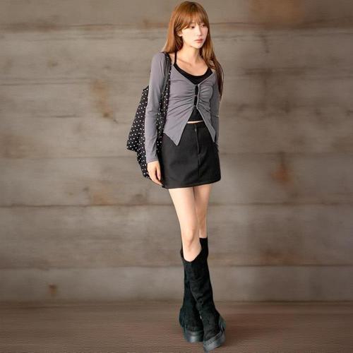 [신상오픈런]여성 레이어드 크롭 골지 나시 셔링 티셔츠
