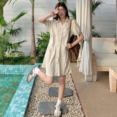 [벨리시앙]셔츠카라소매셔링홑겹원피스(OP3209)