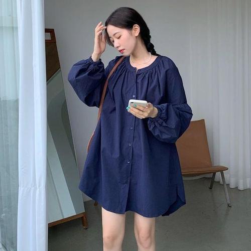 [셀럽하우스]루즈핏 KVKT0928 셔링 셔츠 데일리룩 미니멀 원피스 롱셔츠