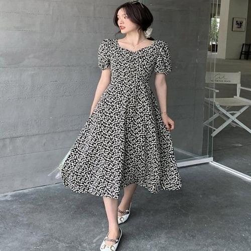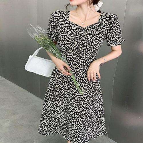 [엄지척]여성 넥라인 앵두무늬 셔링 a라인 여름 롱원피스 반팔_19912199_667501