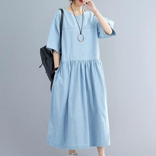 [엄지척]여성큰옷 셔링 반팔 빅사이즈미시옷 롱원피스 배색 30_19914613_667501