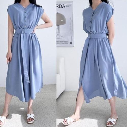 [엄지척]허리 셔링 민소매 롱원피스 허리 밴딩 여름 원피스_19914297_667501