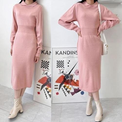[엄지척]어깨 셔링 포인트 여자 카라넥 니트 롱원피스_19914269_667501