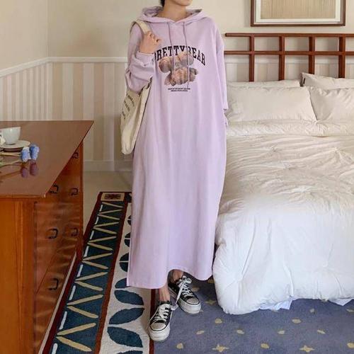 [에이치플러스몰]후드 롱니트 셔츠 차두카 베어 원피스 롱 여성