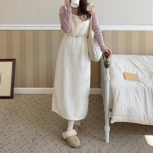 [에이치플러스몰]온나핏 탑 뷔스티에 리혤리 롱니트 셔츠 원피스