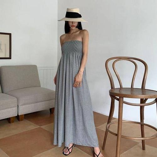 [에이치플러스몰]휴양지 여름 원피스 뷔스티에 롱니트 데님 셔츠