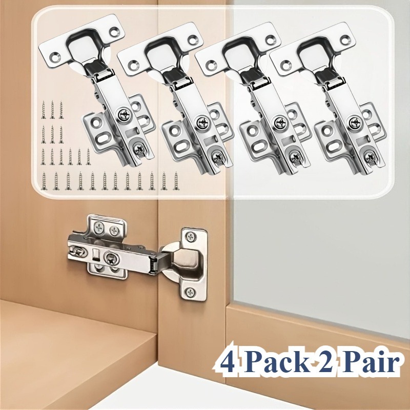 TEMU 4개입 유압 캐비닛 힌지 | 문과 캐비닛을 위한 부드러운 버퍼링, 35mm 힌지 컵, 견고한 설치 디자인, 전체 커버리지, 내구성 있는 금속 구조, 부드러운 캐비닛 작동 | 광택 처리된 힌지 디자인