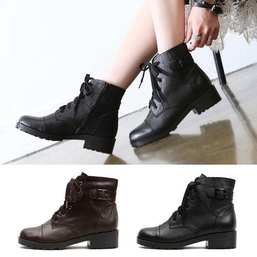 여성 4.5cm 플랫 키높이워커 겨울 털워커 앵클부츠 레이스업워커 가죽워커 통굽워커 가을워커 여자워커