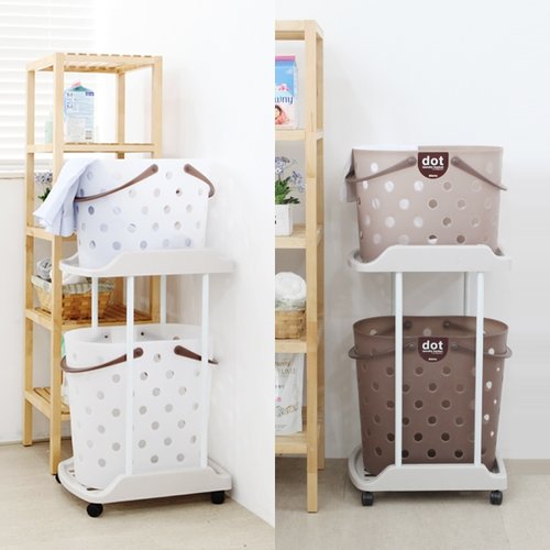 도트 빨래바구니와 선반2단 세트