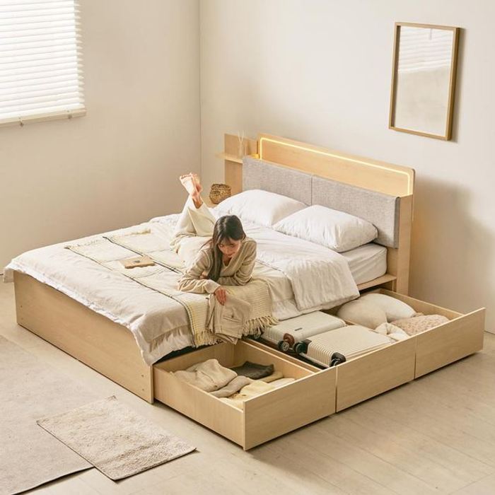 상일리베가구 상일리베가 호텔 소피체 LED 빅서랍 수납침대 프레임 Q/K공용(퀸킹공용)