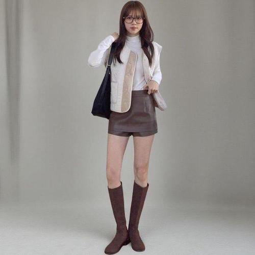 [신상오픈런]여성 레더 미니 스커트 A라인 속바지 유니크 디자인