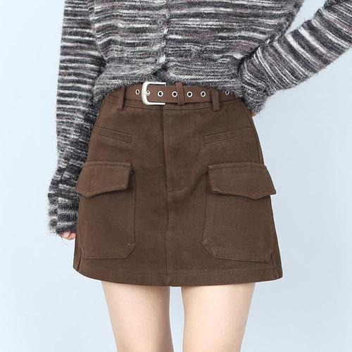 [신상오픈런]여자 벨트셋 절개 A라인 포켓 속바지 데일리 미니스커트