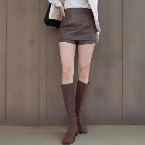 [신상오픈런]여성 독특한 A라인 가죽 미니 스커트 속바지